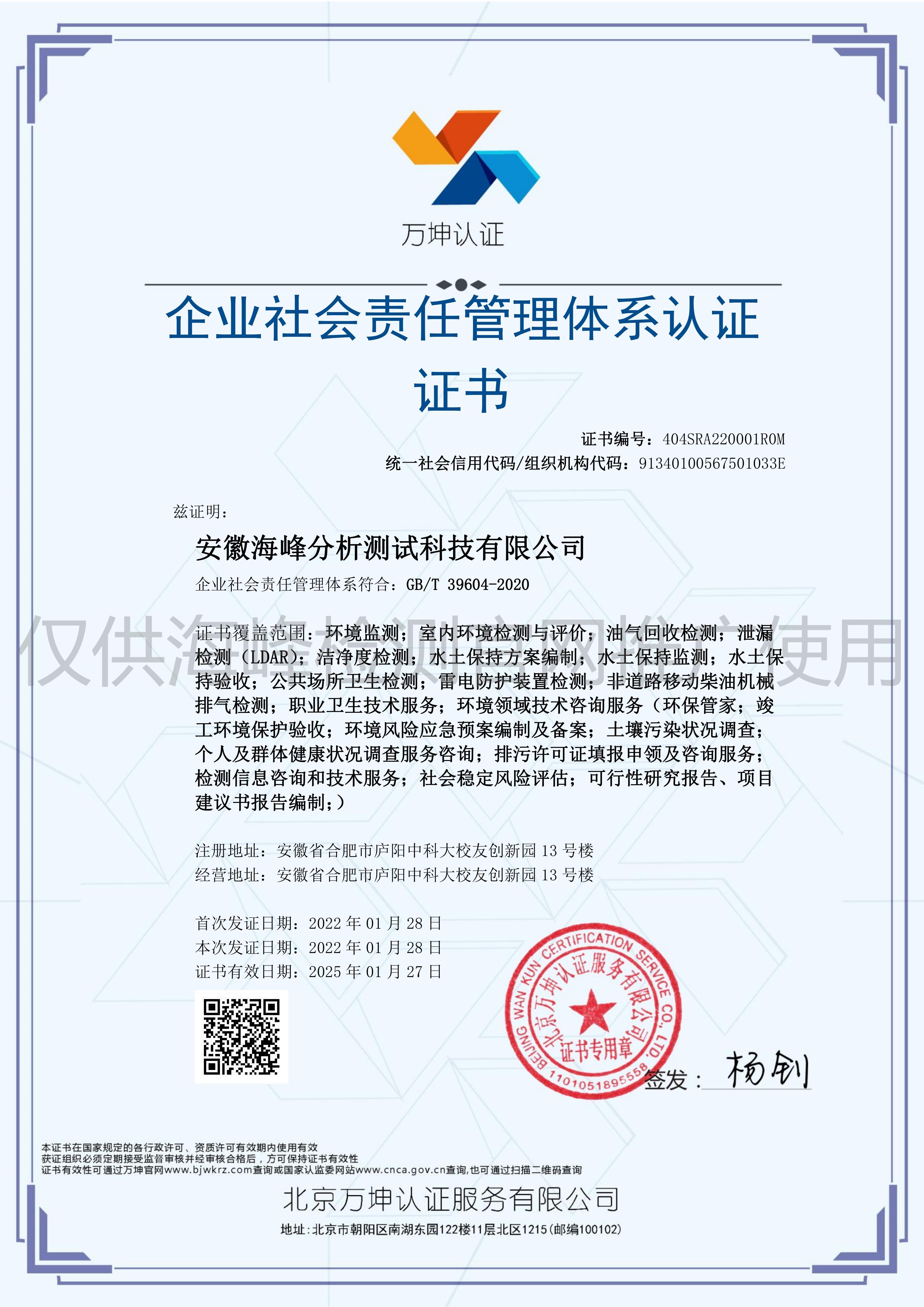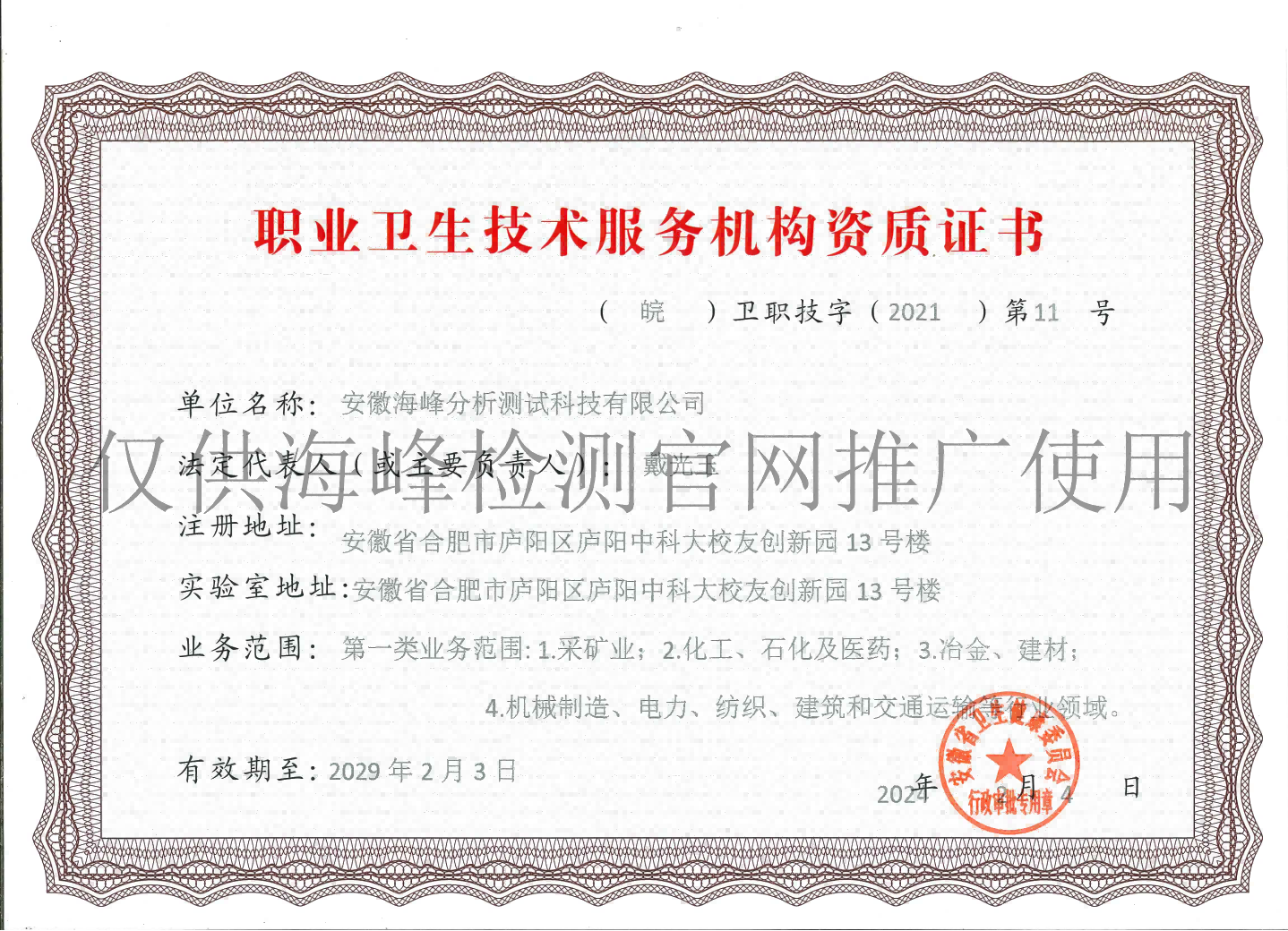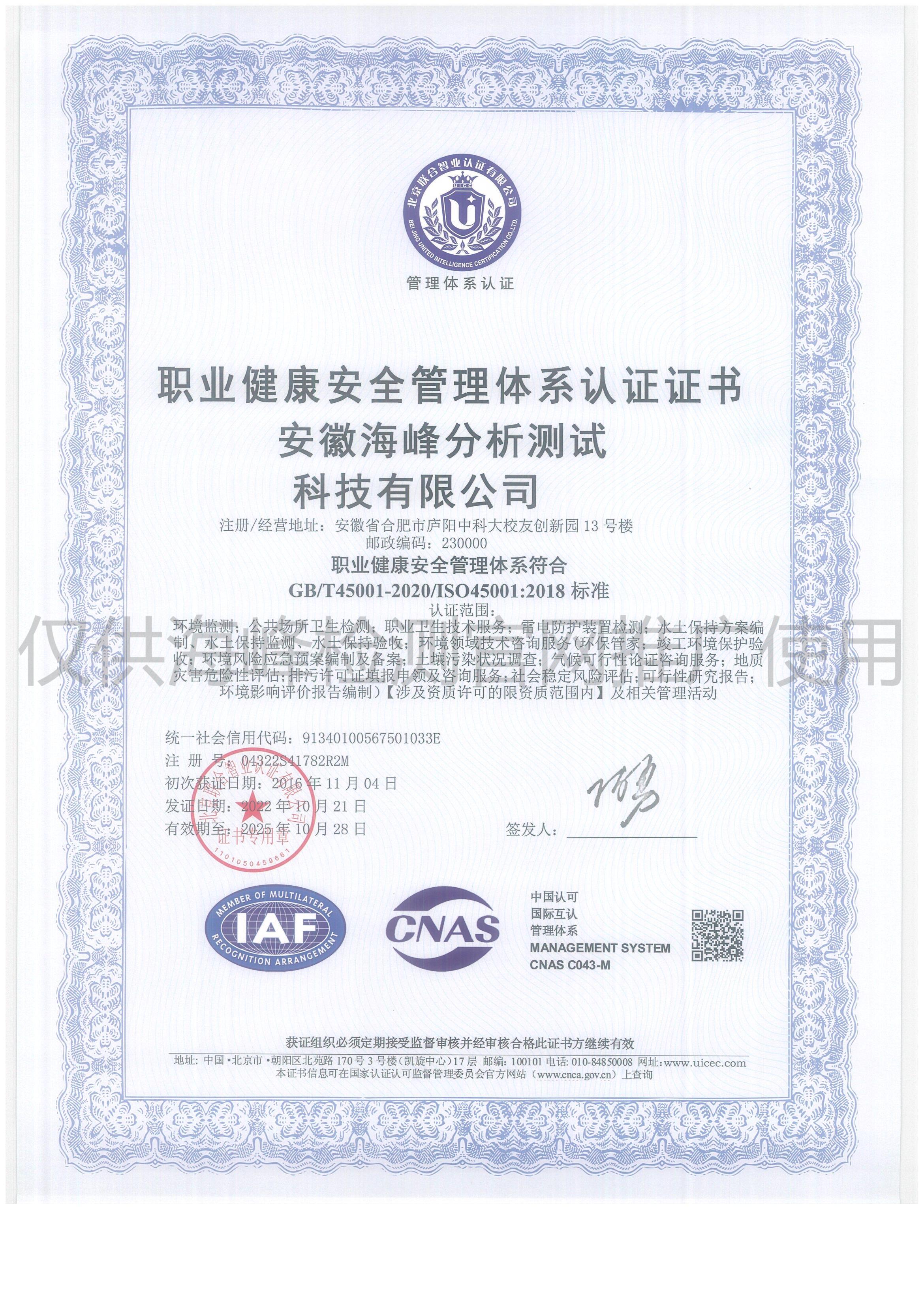 安徽海峰分析測試科技有限公司(以下簡稱海峰檢測)成立于2010 年,隸屬于安徽方中科技集團有限公司,公司下設安徽遠通檢測科技有限公司(安慶)、安徽安海新環(huán)境科技有限公司(亳州)。